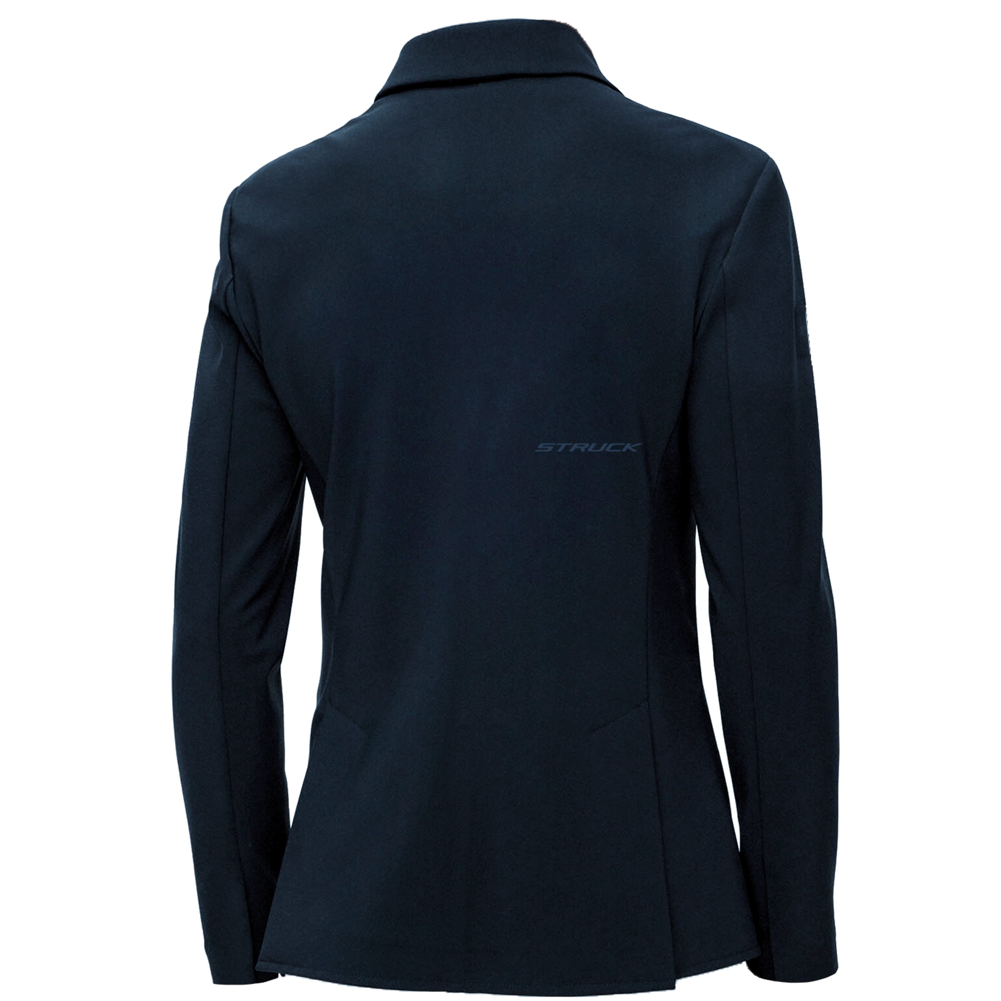 The STRUCK WJ10 combines cutting-edge technical fabrics with a timeless silhouette tailored specifically for the female rider. Lightweight, breathable, and water-resistant, this show jacket offers four-way stretch for full mobility and all-day comfort. Subtle details like contoured seams, tone on tone decoration, and a hidden zipper under classic snap buttons ensure a polished look without sacrificing performance. We've made this the perfect traditional jacket length for the hunters and equitations, complete with back vents for that perfect look in the ring.
