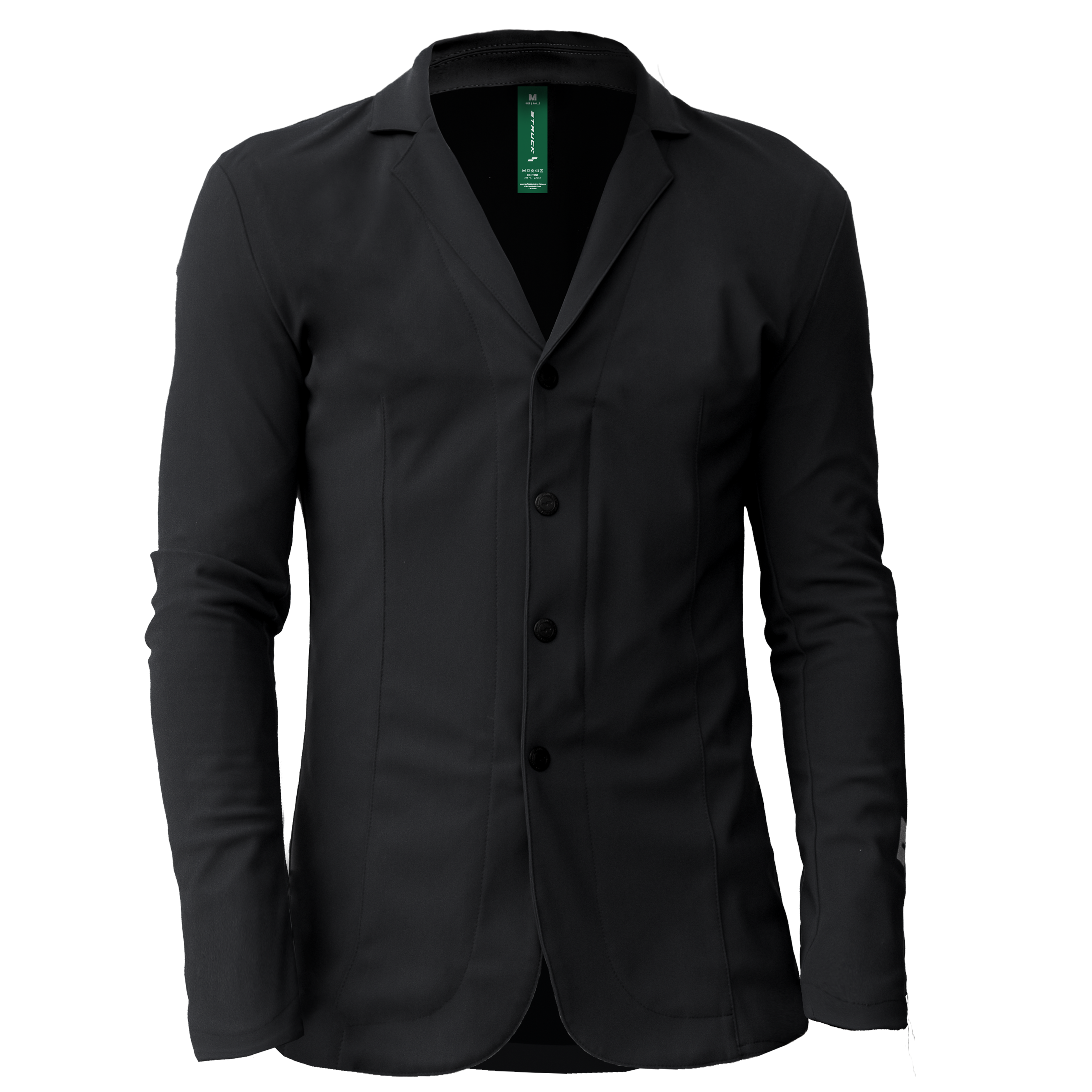 The STRUCK MJ10 combines advanced technical fabrics with a refined, masculine silhouette engineered for serious riders. Lightweight, breathable, and water-resistant, this jacket delivers four-way stretch for unrestricted movement and long-lasting comfort. Discreet features like tone-on-tone detailing, structured seams, and a hidden zipper beneath traditional snap buttons ensure a clean, professional look in any ring.